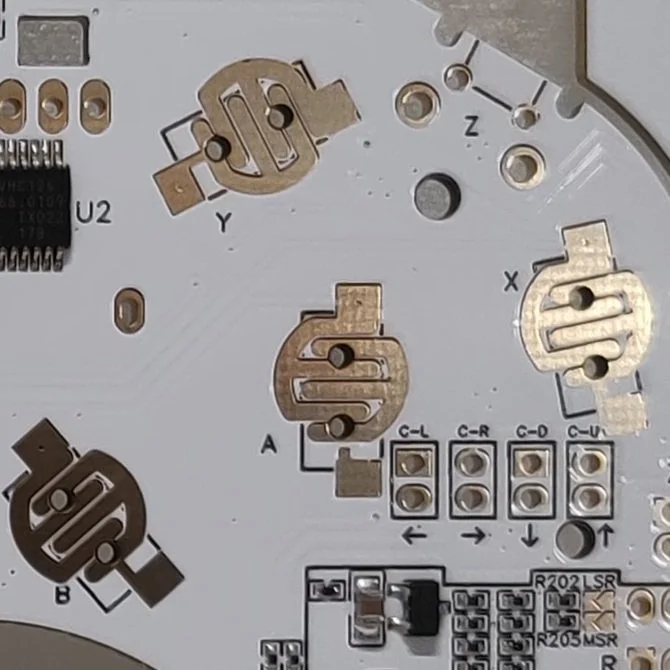- 5 = ZSW7 (figure 2) - enable c-pad, in an effort to reduce the overall cost of a c-pad significantly i have moved most of the necessary components over to the main board, all that will need to be soldered are two 1.1kΩ resistors (through-hole or surface mount) and the four micro switches.